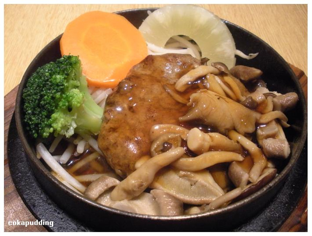 於是乎又點了個漢堡排,吃來蠻鬆軟一旁的菇菇不錯但還是無法超越胡椒廚房的漢堡排,可能是戚戚戚的煙不夠厲害