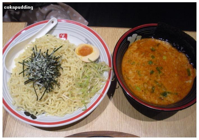 麻辣豚骨沾麵$180,挖喔~這樣看..麵條好多喔,可尼怎麼這麼會吃啊! 哈哈哈