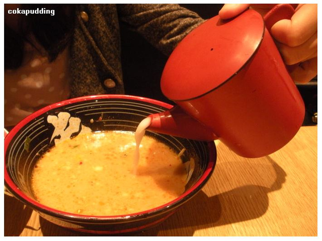 豚骨湯頭裡有滿滿的脂肪油花,不會油膩倒是喝完嘴角黏黏像是啃完豬腳的感覺讓人意猶未盡頻頻嘖嘴阿~嘖嘖嘖嘖嘖XD