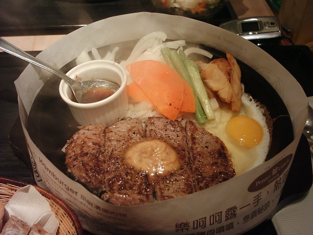漢堡排口味算不錯,也很香~上面那層橘色的好像是油吧