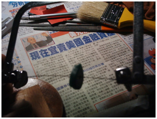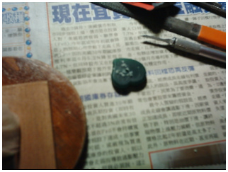 把正面的邊邊磨圓打亮之後就是穿洞了