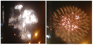 原來是放起國慶煙火了~ 大家就地就站著看起煙火來