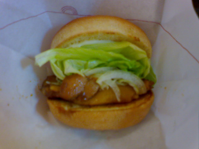 這是蜜汁烤雞堡,今天的烤雞肉塊還蠻大塊的(幸運~^^)