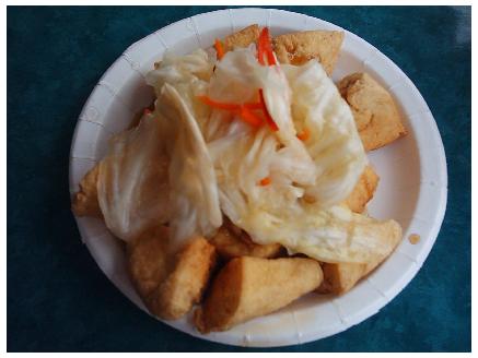 臭豆腐的泡菜好像可以自己加,罐子就放在一旁的小桌子而已