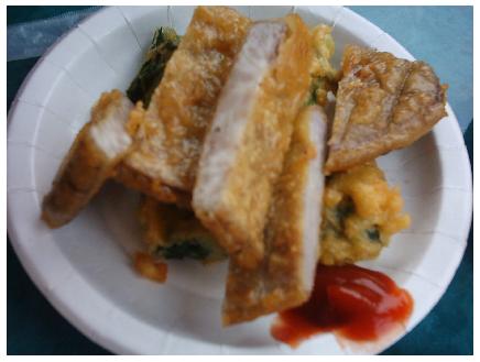 上面是炸芋頭,下面是炸韭菜捲,韭菜捲這東西我真的是第一次吃到