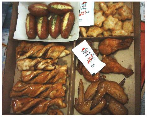 中午用上次小眼睛送的券買了個大披薩-和風章魚燒+芝心,免費換了一份"哈燒拼盤"耶