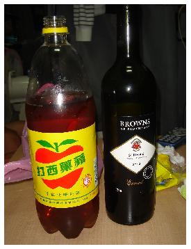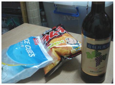 買了冰塊&蘋果西打來調,因為喝一半不好收拾所以硬是要喝完 14%3個人喝..
