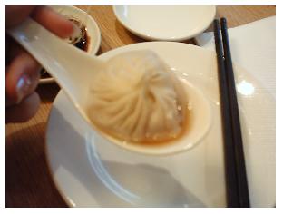 就是小籠湯包嘛!(感覺給我吃真是有點浪費到耶..)皮很薄,吃不到什麼皮味