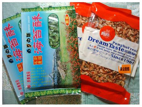 所以下場就是要幫我們帶伴手禮了~! 我跟澎湖不大熟,聽她說有海苔酥&櫻花蝦,就說那就