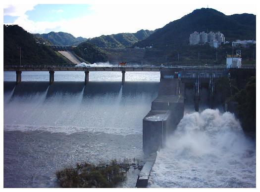 吃飽後也差不多快四點了,回程經過了水庫剛好看到在洩洪,挺壯觀的!好多人在橋上車靠邊