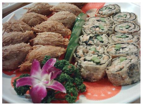 右邊的是海苔裹蝦肉+絞肉打在一起的泥,中間包入蘆筍,還不錯吃,蘆筍有點硬