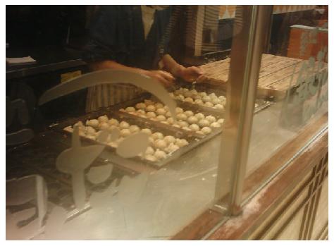 製作中~~~ 不過沒什麼人在排隊,他看起來一點也不忙的樣子!哈~