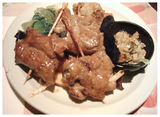 拿生菜配.. 豬肉串味道不賴,有點鹹會讓我想配飯~