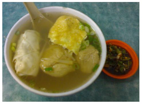 皮好像比較不會糊掉,有一點像豆籤的口感~湯的味道很清淡有點像油蔥湯,不過整體味道還不賴