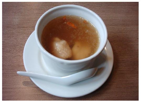 "每日湯",今天的應該是枸杞雞湯,清清的但卻不錯喝,裡頭的雞肉燉的很爛,不怎麼需要