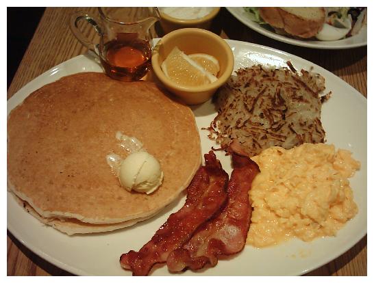 讓奶油融化再淋上楓糖漿吃還蠻夠味的,因為楓糖漿很甜XD..旁邊附餐有煎薯餅,一絲一絲的口感