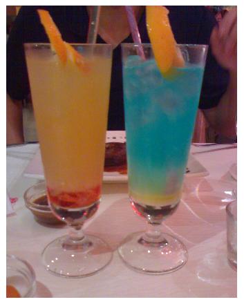 左邊是我的冰釀優格玫瑰茶,右邊是暉的雪沁藍橙,說真的,我覺得我從以前到現在上餐廳