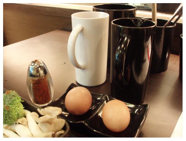一開始送上來就是這樣,已經擺放好挑選的菜&醬汁,等熱了裡頭的東西熟了就可以吃