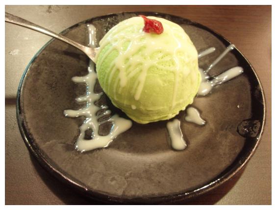 甜點抹茶冰淇淋,味道頗濃,可明顯的看的出是一盤盤挖好後放到冰箱冰的