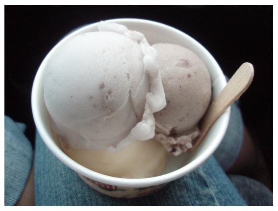 3球$35,這次點了芋頭,紫米,鳳梨~芋頭淡淡香香的,古早味;覺得很特別的是紫米