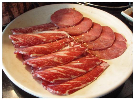 可能是吃吃喝喝了好一陣子有點膩了,熊不知怎麼腦筋打結的點了"牛瘦肉"這東西