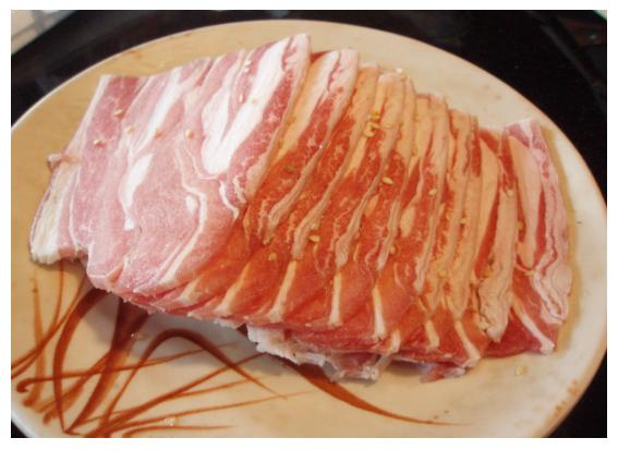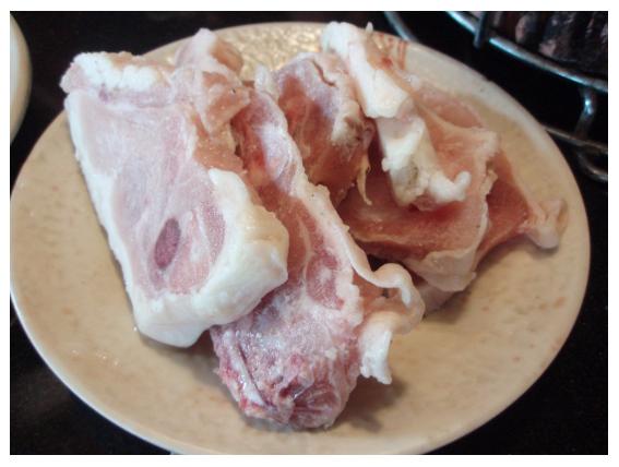 油滋滋的豬肉盤拿來一烤噴油之後火就會旺啦!!看到肥嘟嘟的豬培根了沒阿