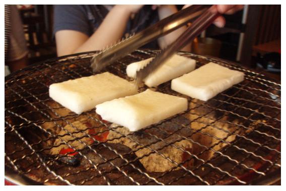 最後的甜點是烤麻薯,店員會來幫大家換乾淨的網子然後幫我們烤