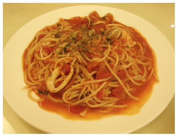 番茄總匯海鮮麵$200,雖然兩個人因為迷路+天氣悶熱的關係事實上是沒啥胃口的