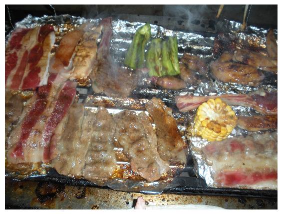 開始烤囉~~剛開始烤放錫箔紙,雖然烤的是好烤的肉片但實在好慢熱..最後受不了