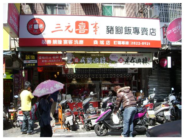 很多攤都還沒開,看到這家豬腳飯裡頭人挺多的,突然就很想要吃耶~我們倆好像