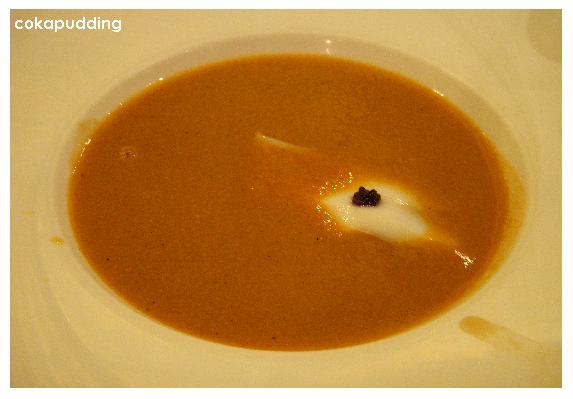 南法魚子醬海鮮濃湯,我的盤子旁邊有沾到像是醬的東西,看起來沒有很美觀所以我切掉了..