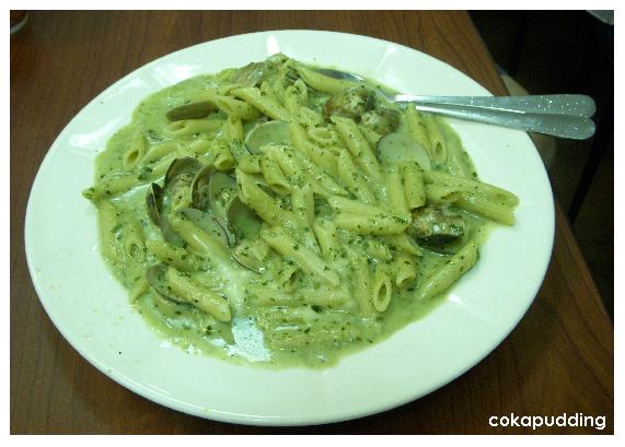 青醬蛤仔管麵,醬不會到很ㄍㄡˊ,但是給很多,蛤仔還蠻大顆的,這家給人的感覺有點像