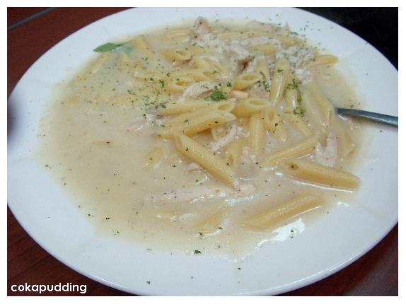 好像有點變成湯麵的奶油雞肉管麵,今天因為位置有點擠&有兩位新朋友,所以我不好意思