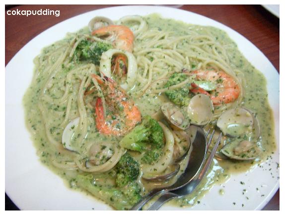 新朋友之一的芭龔點的海鮮青醬義大利麵,跟蕃茄海鮮只差在醬汁啦!