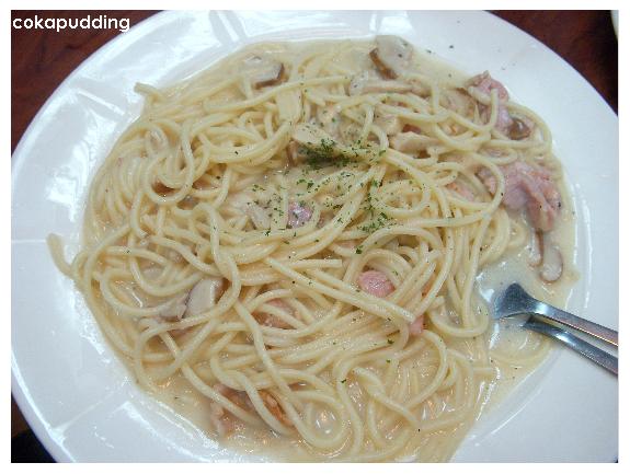 雖然沒吃到怡卉的奶油雞肉麵,不過幸好我自己也是點了奶油醬的培根義大利麵