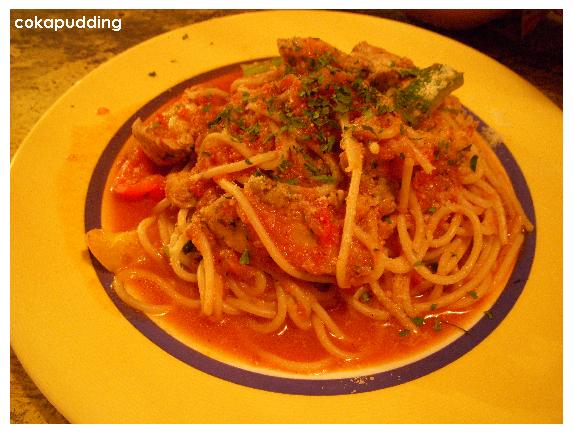 是莎拉,有點普通,這可惜的是淋了番茄醬汁,我沒很愛番茄味,不過幸好我很餓,所以還是通通消滅