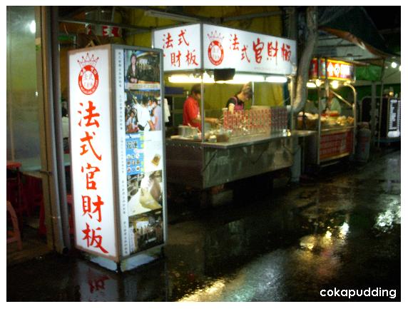 又回自強夜市去吃!反正第一家烤肉實在好味~昨晚我吵著要吃的法式官財板沒有開,今天有開哩