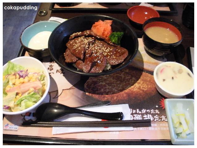 今天挑了照燒牛排定食,調味還是一樣好吃,只是我覺得今天的牛肉片有一點點肉腥味,但暉不怎麼覺得