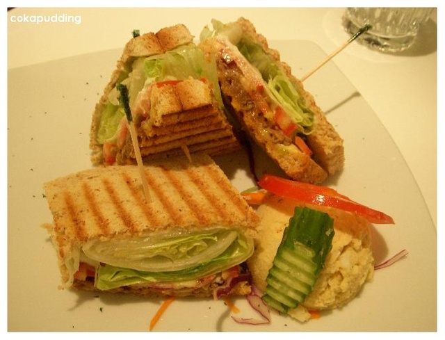 以為會很小份結果吃了也挺撐的..帕尼尼其實就是吐司夾料用那個像鬆餅機的東西壓一壓嘛~