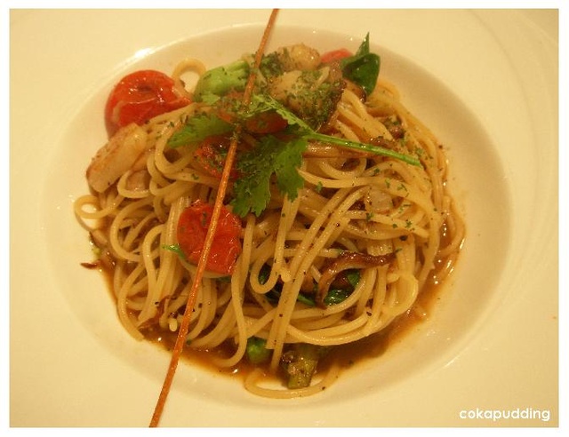 老師跟S都點了佛羅倫斯干貝蟹肉麵$260,看起來跟吃起來都走清爽路線