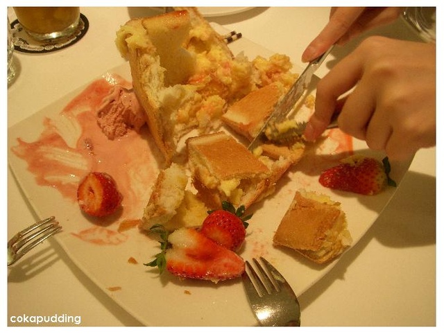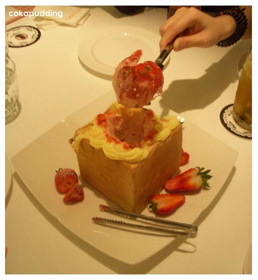 外頭的土司邊就沾奶油&冰淇淋搭配著吃,說實話裡頭的蜜糖吐司,口味很像我老媽抹乳瑪琳烤吐司之後灑砂糖的味道