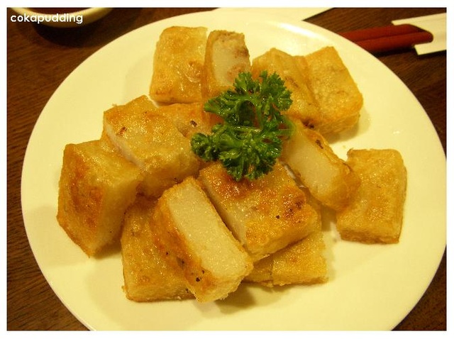 我不想吃像正餐的東西所以點港式蘿蔔糕$60,是L不喜歡但小B喜歡裡頭有東西(像蝦米.油蔥.蘿蔔絲.培根末之類)的口味
