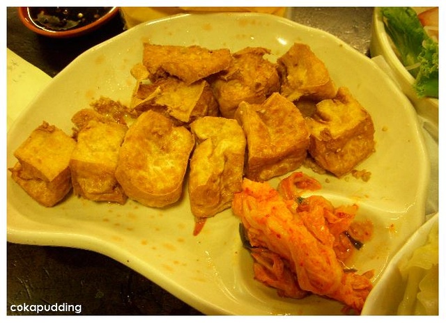 豆腐還蠻嫩的但我不覺得是蛋豆腐,可是它看起來又黃黃的