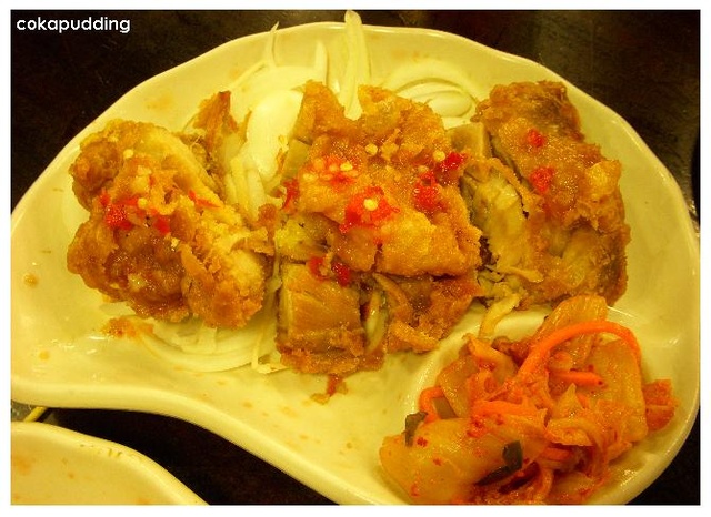 泰式椒麻雞$150,這道不好吃,肉炸的太老太柴了,口味也很奇怪不中不泰的