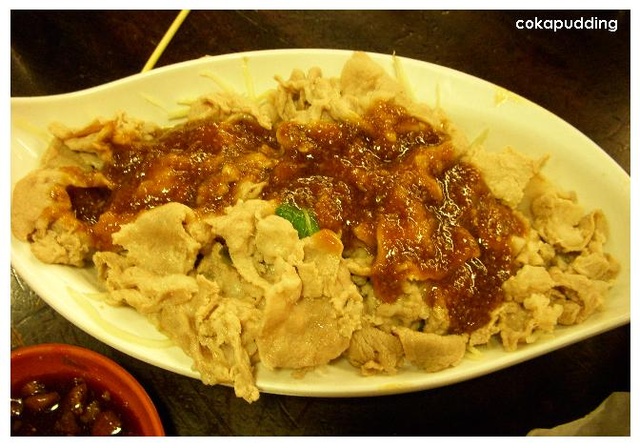 蒜泥白肉$100,上面的蒜蓉醬油膏真的是很鹹!!但是大家都吃的很高興還不配飯