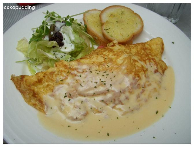 奶油起司醬口味沒有想像中的重但至少香香的,對我來說也比蕃茄醬討喜啦!裡頭的料還不錯吃