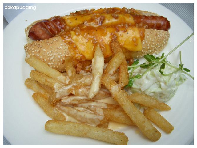 肉醬起司熱狗堡$200,這應該是L的,因為我好像有吃一小塊,記得被她切的很可怕還濕搭搭的