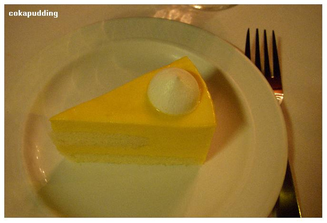 甜點大家都一樣是一塊不太吃得出口味的小蛋糕,我們問服務生說有其他的嗎?