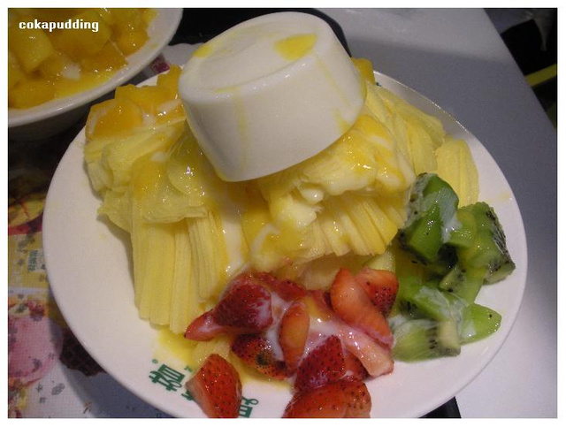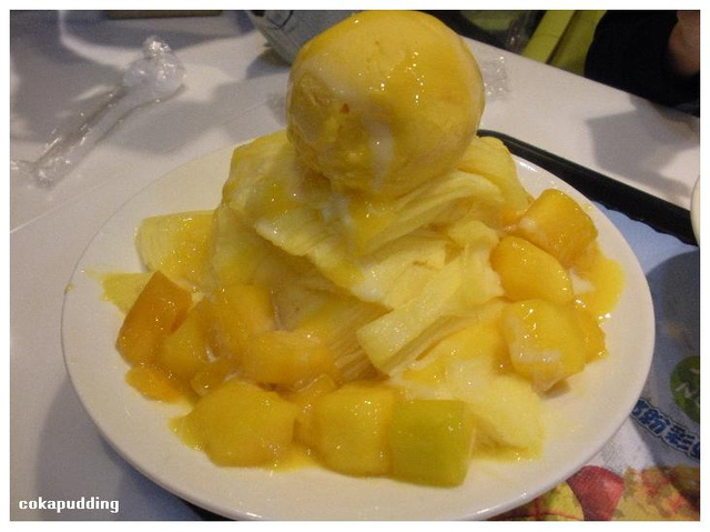下面黃色的雪花冰吃起來很奇妙,有點黏黏的fu~ 但也挺清爽的,奶酪我覺得還好,不夠濃