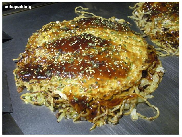 一直以來都很不會分甚麼甚麼燒,有種是有麵糊的,這種是裡頭有炒麵的,雖然今天有"喔~這種就叫廣島燒阿"